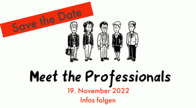 Nach­dem im ver­gan­ge­nen Schul­jahr die Ver­an­stal­tung Meet the Pro­fes­sio­nals“ kurz­fris­tig wegen eines Unwet­ters abge­sagt wer­den muss­te, star­ten wir im Novem­ber einen neu­en Ver­such! Notiert euch schon jetzt den 19.11.2022 in eurem Kalen­der. Wei­te­re Infos zu den Referent:innen sowie zum Anmel­de­ver­fah­ren fol­gen in Kürze!