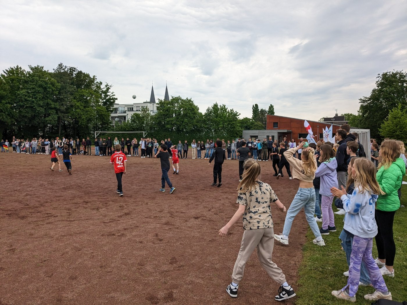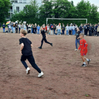 Nach einem span­nen­den Fina­le konn­te sich in der Euro­pa­meis­ter­schaft der 5. Kläss­ler, die die gan­ze Woche wäh­rend der Pau­se statt­fand, Spa­ni­en (Klas­se 5b) gegen Deutsch­land (Klas­se 5d) mit 1:0 durch­set­zen. Ein spek­ta­ku­lä­res Tor: Straf­stoß, Innen­pfos­ten links, Innen­pfos­ten rechts, Nach­schuss – TOOOOOOO­OR! Es hät­te nicht span­nen­der sein kön­nen! Wir dan­ken den Sport­hel­fern, den Fans und allen Spie­lern für die­se tol­le Woche!