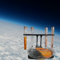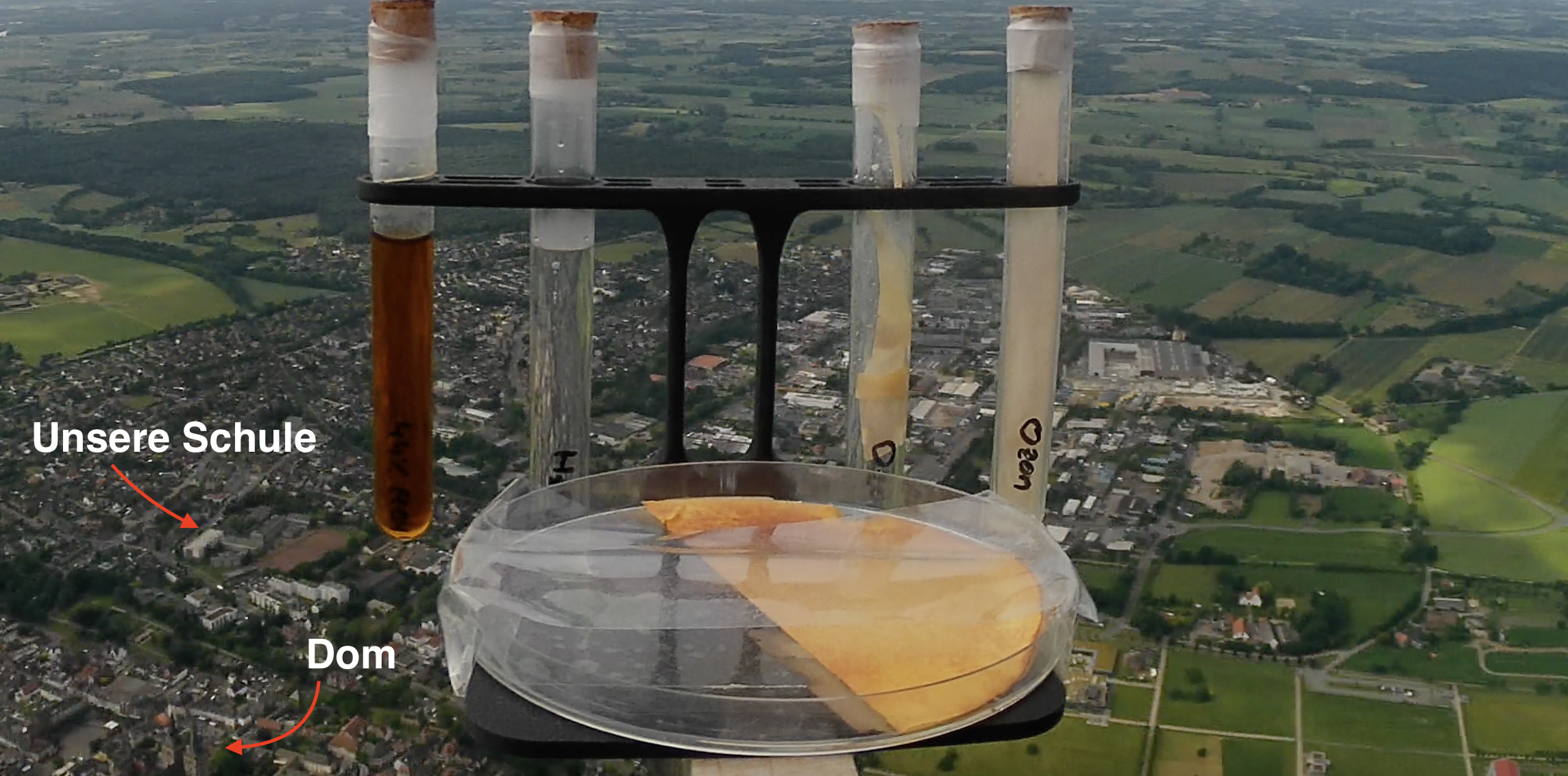 Am Start­tag wur­de der Bal­lon samt Son­de bei guten Wet­ter­be­din­gun­gen erfolg­reich auf den Weg in die Stra­to­sphä­re ent­las­sen. Kurz nach dem Start merk­te aber ein Schü­ler, dass er ver­ges­sen hat­te den Daten­log­ger anzu­schal­ten, wes­halb wir kei­ne Daten von den tat­säch­li­chen Tem­pe­ra­tu­ren, denen die Son­de aus­ge­setzt war, und der genau­en Flug­hö­he hat­ten. Es konn­ten aber drei Stun­den Video­ma­te­ri­al von der Bord­ka­me­ra sicher­ge­stellt wer­den und die Tem­pe­ra­tu­ren der Umge­bung anhand des Aggre­gat­zu­stands der ver­schie­de­nen Flüs­sig­kei­ten in den Reagenz­glä­sern abge­schätzt werden.