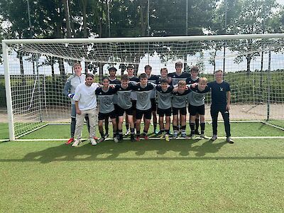 Die in der Vorrunde noch ebenbürtigen Schüler vom GFG aus Kamp-Lintfort, traten nach unseren starken Vorstellungen zuvor fast schon etwas resigniert auf. Davon ließen sich unsere Schüler, die sich auf diesen ersten Kreismeistertitel gemeinsam eingeschworen hatten, nicht blenden und siegten fußballerisch stark nach tollen Toren von Abbas, Leon v. Bonn und Elias mit 3:1.