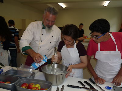 Mit dem Motto „Kichererbse trifft Sauerkraut – Heimat ist da, wo es einem schmeckt“ kochten wir gemeinsam und gegeneinander im Kochduell typisch niederrheinische und palästinensische Gerichte. Auf Ausflügen unter anderem zum Iglo-Werk in Reken, zum Versuchs- und Bildungszentrum Landwirtschaft Haus Riswick in Kleve, auf den Wochenmarkt in Münster und zur Sünner Brauerei in Köln zeigten wir unseren Gästen wo einige unserer Zutaten herkommen und was unsere Region an kulinarischer Vielfalt bietet.