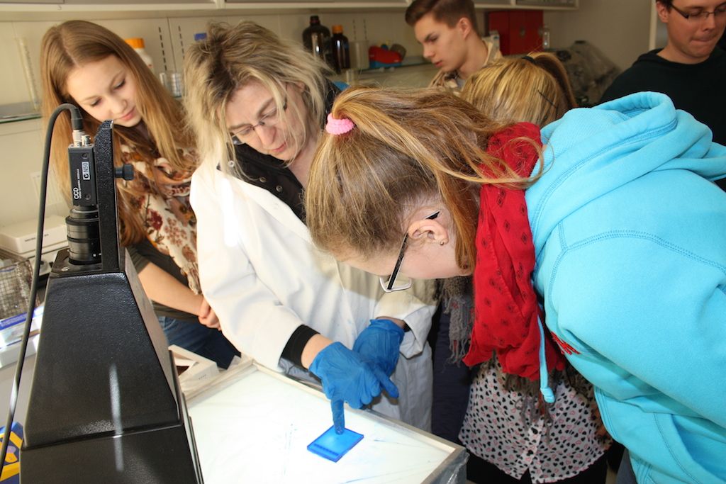 Was Gentechnik ist und wie diese theoretisch funktioniert haben die Schülerinnen und Schüler des Biologieleistungskurses der Q1 schon bei Frau van Stephaudt im Unterricht gelernt. Wie Gentechnik aber wirklich angewendet wird, und wie zeitaufwendig sie ist, durften die Schüler am 26.01.2016 im Labor von Köln PUB selbst ausprobieren. PUB steht für „Publikum und Biologie“ und ist dazu da, den Menschen das Thema Gentechnik etwas näher zu bringen. Die Schüler bekamen Bakterienstämme, aus denen bestimmte Genabschnitte herausgeschnitten werden sollten. Nach mehrmaligem Zentrifugieren, Zufügen von Chemikalien und Präparieren, konnte jeder mithilfe der Gelelektrophorese, einem chemischen Verfahren, feststellen, ob ihm das Experiment gelungen war. Am Ende des Tages konnten die meisten mit Erfolg ihre Resultate mit nach Hause nehmen, und es macht schon einen großen Unterschied, ob man Biologie theoretisch oder praktisch erlebt.