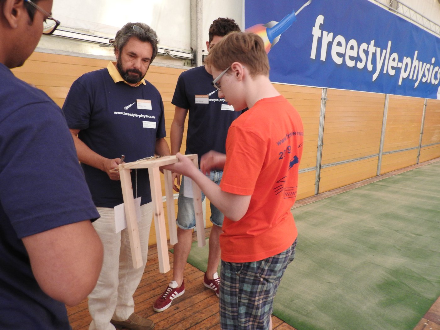 „Freestyle-physics“ ist ein Wettbewerb für Schülerinnen und Schüler die bereit sind, sich physikalischen Problemen zu stellen und ein Bauprojekt zu übernehmen. Die Planung und Durchführung kann für eine begrenzte Schülerzahl im Rahmen der Physik-AG erfolgen, die jeden Montag von 13.30 Uhr bis 15.00 Uhr im Raum F011 stattfindet. Die Präsentation der Projekte findet in jedem Jahr in der Universität Duisburg ganztägig statt. Dort finden sich Schülerinen und Schüler aus allen Schulen und in jeder Altersklasse aus ganz Deutschland ein und präsentieren ihr Bauprojekte zu den jeweiligen Aufgabenstellungen. Noch am gleichen Tag findet auch die Siegerehrung statt, es gibt tolle Preise zu gewinnen.
